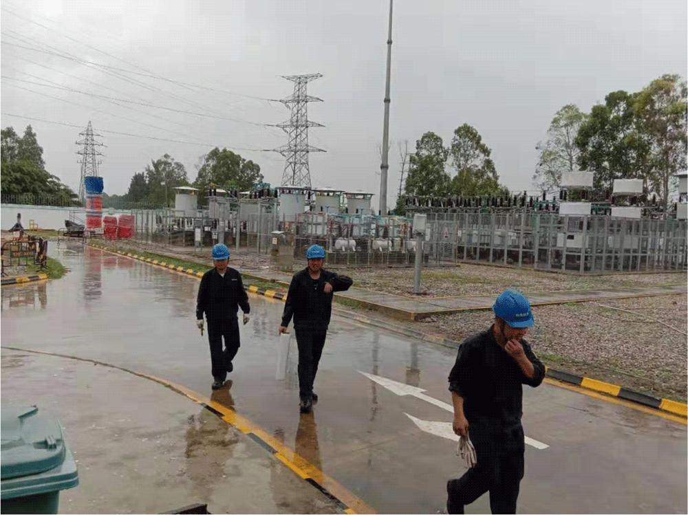 竣工試驗(yàn)其中一項(xiàng)挑戰(zhàn)就是極端的天氣變化。七月底的三亞,溫度最高可達(dá)攝氏四十多度。檢測(cè)人員所穿戴的是厚厚的絕緣服等裝備,高溫對(duì)于他們的身心來說,都是一場(chǎng)嚴(yán)峻的考驗(yàn)。熱帶氣旋帶來的除了高溫,還有那說來就來的降雨。