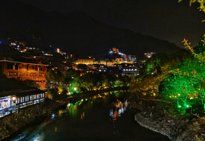晚餐后,小伙伴們漫步于西江苗寨,穿行于層層疊疊的吊腳樓之間。隨著天色越來(lái)越暗,西江千戶苗寨變成了燈的海洋,星星的世界。在點(diǎn)點(diǎn)燈火中,最耀眼的當(dāng)屬環(huán)繞在白水河上的風(fēng)雨橋。