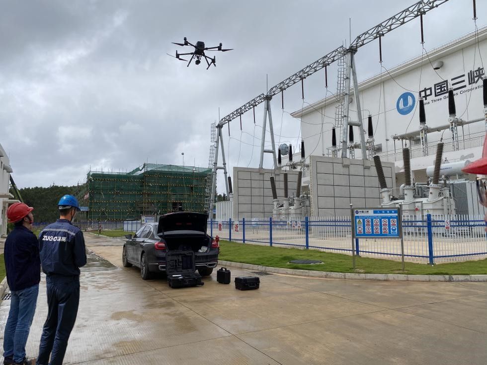 2020年9月26日,受中國三峽新能源(集團)股份有限公司(以下簡稱:中國三峽)委托,珠高電氣檢測有限公司(以下簡稱:珠高檢測)攜手深圳共達地創(chuàng)新有限公司(以下簡稱:共達地創(chuàng)新)人工智能算法團隊一同前往三峽新能源陽西沙扒集控中心,對陸上集控中心電抗器出線套管金具和連接導線進行智能帶電巡檢。
