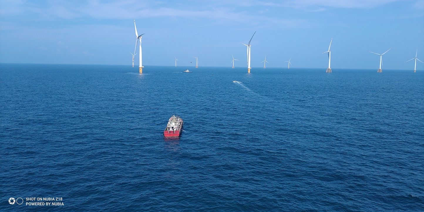 該海上風(fēng)電項(xiàng)目時(shí)間跨越長(zhǎng),受冬季大風(fēng)及夏季臺(tái)風(fēng)影響,全年可作業(yè)天數(shù)僅110天左右。今年春節(jié)后,面對(duì)新冠肺炎情影響,中廣核項(xiàng)目建設(shè)團(tuán)隊(duì)科學(xué)調(diào)配資源,以4天安裝1臺(tái)風(fēng)機(jī)的速度全力推進(jìn)工程建設(shè)復(fù)工復(fù)產(chǎn)。珠高電氣檢測(cè)有限公司(以下簡(jiǎn)稱:珠高檢測(cè))承接此次項(xiàng)目。